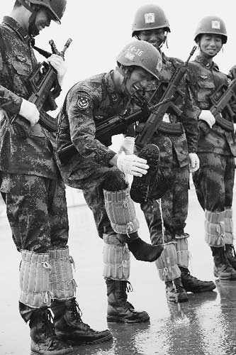 9月初,參加國慶60周年閱兵的官兵沙場訓練急,讓北京北郊的空軍某機場一片火熱。