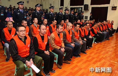 中新網(wǎng)重慶10月26日電 26日上午,備受關(guān)注的原重慶市人大代表、億萬富翁黎強(qiáng)團(tuán)伙涉黑案在重慶市第五中級(jí)人民法院公開開庭審理,31名被告人出庭受審。黎強(qiáng)被控犯組織、領(lǐng)導(dǎo)黑社會(huì)性質(zhì)組織罪、聚眾擾亂交通秩序罪、聚眾擾亂社會(huì)秩序罪、聚眾擾亂公共場(chǎng)所秩序罪、尋釁滋事罪、隱匿會(huì)計(jì)憑證、會(huì)計(jì)賬簿罪、行賄罪、非法經(jīng)營(yíng)罪、偷稅罪九項(xiàng)罪名。