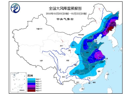 20日20時至22日20時,華北、東北、寧夏、陜西、黃淮、江淮、江漢、江南等地將先后有4~6級、陣風7級偏北風。上述地區及華南北部、貴州等地的氣溫將下降8~12℃,其中,東北地區東部、江淮東部等地降溫幅度可達14~16℃,東北地區東南部的部分地區降溫達18~20℃。