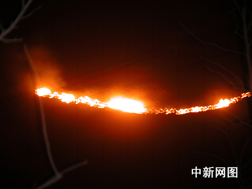 記者于下午5時(shí)30分接報(bào)后,立即向滿(mǎn)城縣官員進(jìn)行了火情通報(bào),并驅(qū)車(chē)沿京昆高速滿(mǎn)城收費(fèi)站由北向南了解火情。只見(jiàn)京昆高速路西側(cè)連綿二、三十里的山頂已成了一條火帶。山上枯草、灌木等植被噼里啪啦的燃燒聲不絕于耳,火苗隨風(fēng)力忽大忽小。行進(jìn)至順平境內(nèi),記者未見(jiàn)到山上有明火。