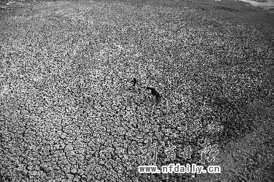 陸良縣德格海子水庫庫容160萬立方米,由于持續干旱已干涸見底。20日下午,溫家寶曾來過這里。記者現場放眼望去,水庫庫底一條條縱橫交錯的裂痕一望無垠,近看密密麻麻的泥塊像梅花樁一樣,裂痕深度足有二十厘米,上面還依稀可見干枯死的河蚌。