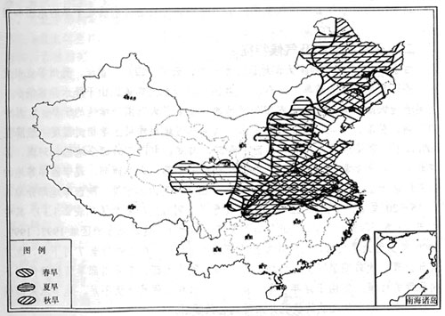 2001年,我國除華南、西南和河套等部分地區降水偏多外,其余大部分地區降水偏少,溫度偏高,大風天氣頻繁,繼2000年后再次發生了大范圍的干旱?偟膩砜矗2001年長江流域極其以北地區受旱范圍廣、持續時間廠、旱情嚴重,其他地區相對較輕。據有關部門統計,全國累計受旱面積約3846萬公頃,成災面積2373.3萬公頃,受災面積是建國以來的第三位(次于2000年、1978年),成災面積是建國以來的第二位(次于2000年),屬干旱嚴重年份。其時空分布特征為:華北、東北南部、西北東部地區、黃淮、江淮的干旱主要出現在3~6月,重慶、湖北等地的干旱主要出現在3~9月,東北北部的干旱主要出現在4月、6~11月,長江中下游一帶主要出現在3~5月、7月、9月,四川盆地的干旱主要出現在3~5月、7月。受旱面積較大或旱情較重的有吉林、內蒙古、山西、黑龍江、湖北、重慶、河北、四川、安徽、河南、山東、陜西、遼寧等省市區。