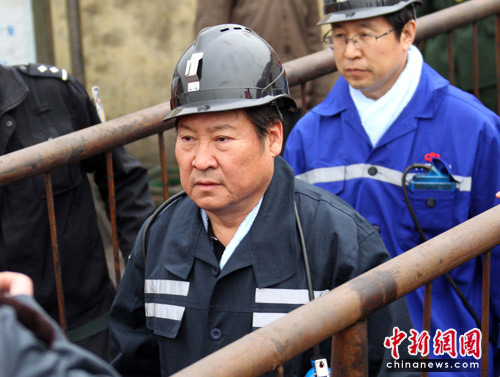 中新網(wǎng)河津3月31日電(張?jiān)?王家?guī)X礦透水事故搶險(xiǎn)進(jìn)入第四天,救援搶險(xiǎn)仍在緊張進(jìn)行。31日中午,國(guó)家安監(jiān)總局局長(zhǎng)駱林,安全監(jiān)管總局副局長(zhǎng)、國(guó)家煤礦安監(jiān)局局長(zhǎng)趙鐵錘,山西省長(zhǎng)王君下井視察搶險(xiǎn)進(jìn)度。