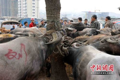 秦大章夫婦看上了馮元達一頭不到兩歲的小牛,“沒換牙齒、蹄也不錯。”秦大章很內行的告訴記者。在此后近30分鐘的時間里,一場在2300元至1900元人民幣之間的價錢拉鋸戰進行起來。最終,在周邊人的撮合下,秦大章以2010元的價錢買到了他看上的小牛。
