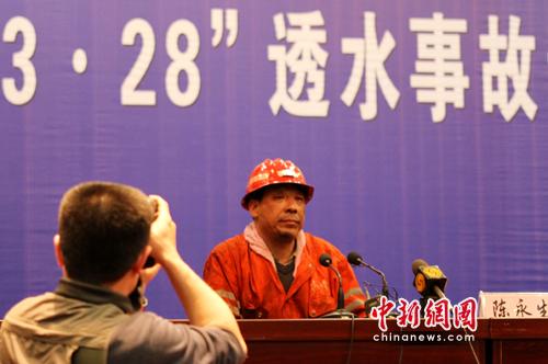 山西焦煤集團汾西礦業救援大隊的大隊長陳永生參與了對第一批九名礦工的救援的工作。他透露,救援隊伍在3月28日透水事故發生的當天傍晚6時就趕到現場,到現在都沒有洗過腳和臉。