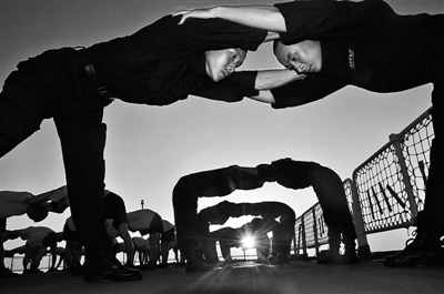 一周后,改進版“護航健身操”再次推出。由于動作科學、簡練、實用,背景音樂動聽,加上艦指揮所的強力支持,這套健身操終于點燃了官兵們的鍛煉熱情,幫助官兵學習健身操動作的何路陽、楊樁和李建紅三人也成了體能鍛煉時間里艦上最忙碌的人。