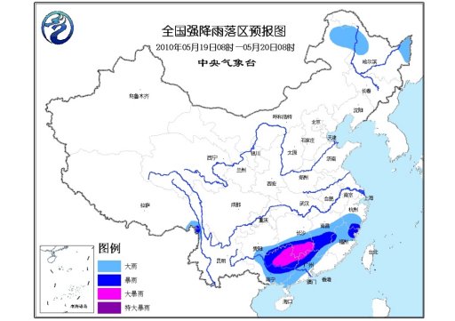 中新網(wǎng)5月19日電 中央氣象臺5月19日06時繼續(xù)發(fā)布暴雨藍(lán)色預(yù)警:預(yù)計,19日08時到20日08時,貴州東南部、湖南南部、江西中南部、浙江南部、福建中北部、廣西中東部、廣東北部和西部以及西藏東南部、云南西北部等地有大雨或暴雨。其中,廣西東北部、湖南南部、廣東西北部等地局部有大暴雨;內(nèi)蒙古東北部、黑龍江東北部和西部的部分地區(qū)有大雨。