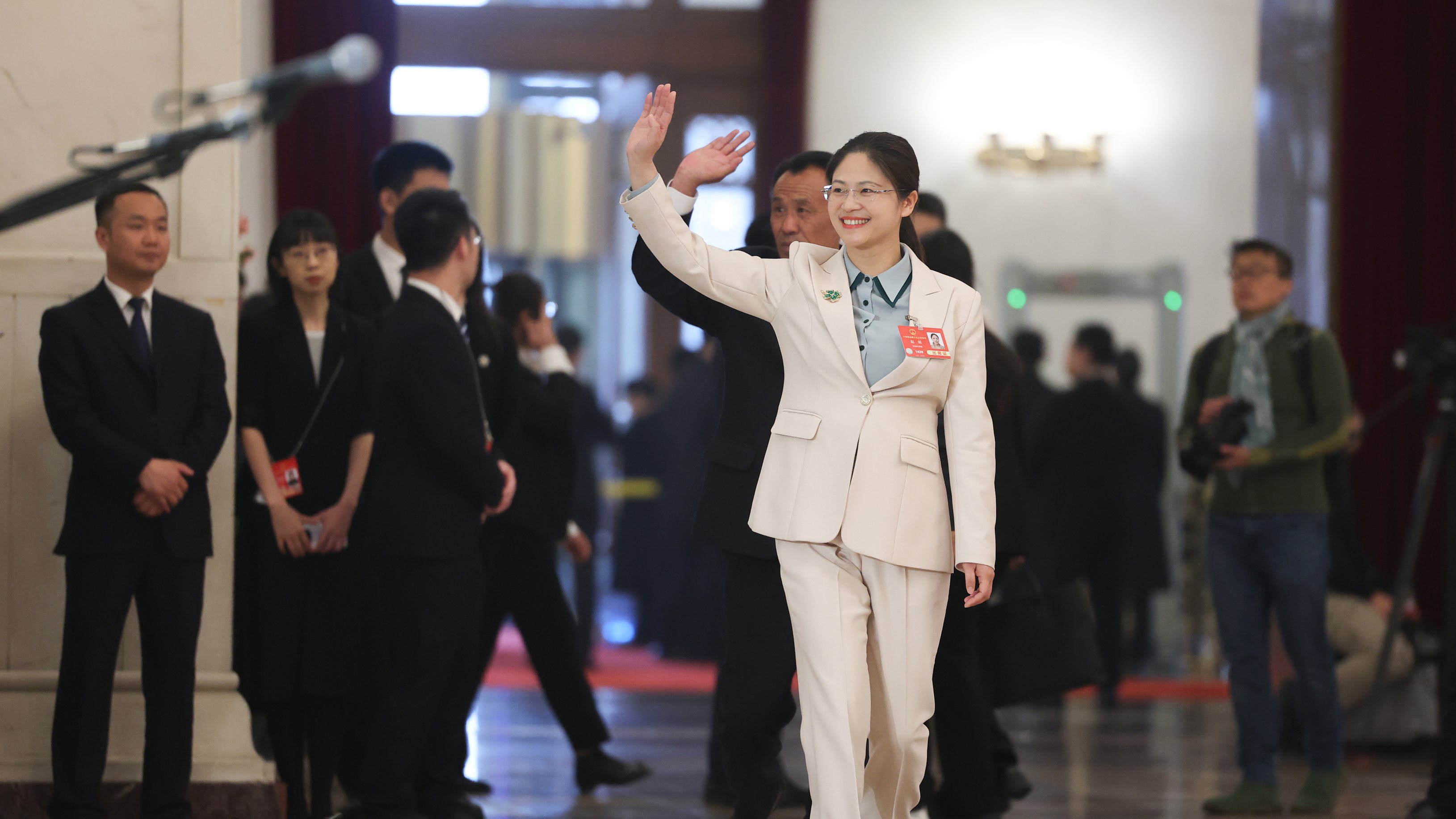 3月8日8:00—8:40(第二次全體會議前),在人民大會堂中央大廳北側舉行十四屆全國人大三次會議第二場“代表通道”集中采訪活動,邀請部分全國人大代表接受采訪。