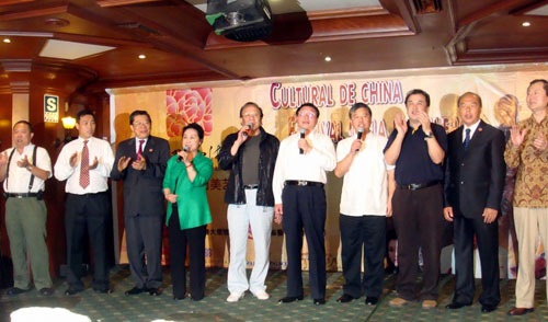 晚會上,第二十屆中國戲劇“梅花獎得主”劉燕燕一曲《我的祖國》,勾起了僑胞對祖國的無限追憶與思念;青年魔術師李寧和一位可愛的小妹妹搭擋,神奇的表演讓小妹妹愣了半天說不出話來;著名評劇表演藝術劉秀榮不僅嗓音圓潤清脆,現(xiàn)編的歌詞也逗得觀眾笑個不停;而首次來到秘魯?shù)幕囆g表演家劉全利、劉全和兄弟倆,則以天津快板的方式向僑胞們做了自我介紹;著名小品藝術家黃宏的一段小笑話,更是讓臺下的送花者接連不斷。
