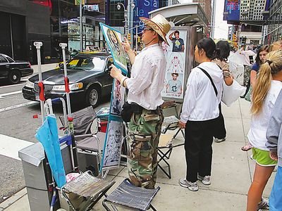 中新網5月6日電 據美國《世界日報》報道,紐約時報廣場1日發生汽車炸彈案后,直接導致游客驟減,加上巡邏警力大增,時報廣場近日比以往大為冷清,在時報廣場附近擺攤維生的華裔街頭藝術家4日大嘆生意慘淡,不少藝術家干脆在家休息。