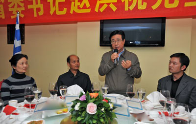趙書記給浙江籍旅希僑胞帶來了浙江省委省政府和全省人民的親切問候,稱贊他們在支持北京奧運會圣火在希臘取火傳遞、支援四川抗震救災、為希臘森林火災和困難兒童捐款捐物等行動中,體現(xiàn)出僑民心系祖國發(fā)展、積極融入希臘、建設模范僑區(qū)的優(yōu)良精神風貌。他和大家一起深情回顧了新中國建國60年、改革開放30多年來取得的輝煌成就,對僑胞們在希臘艱苦創(chuàng)業(yè)十余年取得的豐碩成果表示祝賀。