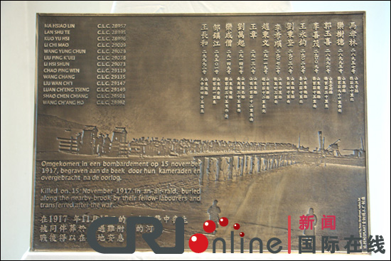 90多年前,13名華工迫于生計,告別家鄉(xiāng),長途跋涉,踏上了處在硝煙彌漫中的歐洲大陸。在比利時的坡泊林,他們參與了協(xié)約國的戰(zhàn)地后勤工作,并與當?shù)厝罕娊Y(jié)下了深厚的友誼。13名華工全部來自中國山東省。1917年11月15日,他們在德軍空襲中喪生。遇難后,他們被同伴葬于坡泊林的一條小河邊。