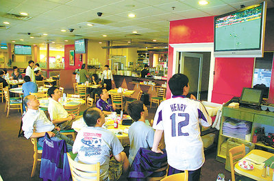 阿罕布拉的一家港式西餐廳11日清晨7時即聚集一批華人球迷,商家也應景將店中全部電視調到球賽轉播,大家同樂。 (美國《世界日報》/楊青攝影)