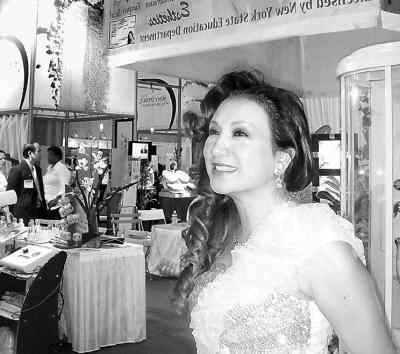 作為美國華人美容界的佼佼者,梁淑冰的展臺寬大而醒目。她給我的第一印象是美麗高雅、年輕活潑,總是帶著熱情而迷人的笑容。很難相信她已是年滿五旬、有4個兒女并且已當了祖母的人。