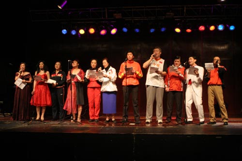 多倫多文藝工作者與前中國體育名將合唱《讓世界充滿愛》。 捷克佳攝