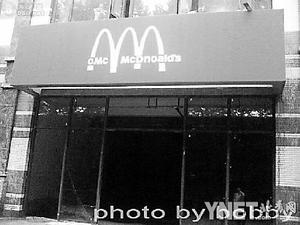 原來,這些商鋪的招牌乍一看是大牌,可再仔細(xì)看看,不對啊,怎么全部是山寨版?真是大跌眼鏡!從東往西第一家是大名鼎鼎的運(yùn)動品牌李寧,“錯了!這個叫李明LI-MING。”第二家是小資最愛的星巴克STARBUCKS,“又錯了,這個叫BUCKSSTAR”。其他的大牌也如法炮制,必勝客成了“必勝糊”,哈根達(dá)斯成了“哈根波斯”,包括屈臣氏、seven-eleven等名牌都被惡搞了一把。最令人叫絕的是,麥當(dāng)勞的經(jīng)典m形標(biāo)志,被多加了一個彎,成了“3扇門”。記者看到,這些掛了招牌的商鋪并沒有一家正式開張。