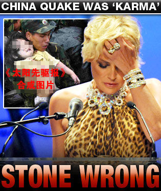 莎朗斯通那些違反人類道德的言論,遭遇全民譴責。西安的一些音像店昨日已將與她有關(guān)的作品下架,其網(wǎng)絡(luò)下載電影也遭到網(wǎng)友抵制。記者還發(fā)現(xiàn),在一些美國網(wǎng)站上,美國網(wǎng)友也展開了對她的批判。
