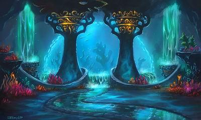 泰坦們將這片原始的空間依照四種元素的特性而劃分為四個屬性截然不同的元素異界。多年來,地、水、火、風這四種元素陷入了永無止境的爭斗,在他們國度的邊界不斷展開大規模的戰斗。在元素位面的其中一個異界之中,有一片廣闊的大海名為無盡之淵,也就是水元素所在的領域。傳說這個水之國度是由一個無比強大的生物“獵潮者”奈普圖隆所統治,他擁有一柄強大無比的武器,據說擁有這個神器的人即擁有掌控艾澤拉斯所有海域的權力。時至今日,這個神器仍安穩地存放在水元素的異界之中…但不久之后一切即將改觀。