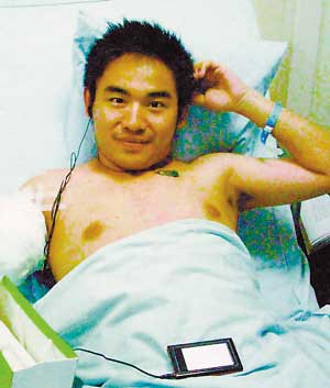 21日凌晨麻醉劑的藥效過(guò)去后,廖波疼痛難忍,為了不影響同室兩名病友休息,他咬著毛巾和筷子堅(jiān)持著,最后把一雙筷子都咬斷了也沒(méi)呻吟一聲。目前,他的病情已趨于穩(wěn)定,但可能還需要再次手術(shù)。住院期間,廖波還認(rèn)了一名志愿者做干媽。“她對(duì)我特別好,是第一個(gè)幫我擦身子、換衣服的人。”廖波喊出“媽”的時(shí)候,志愿者頓時(shí)泣不成聲,把廖波擁在了懷里。