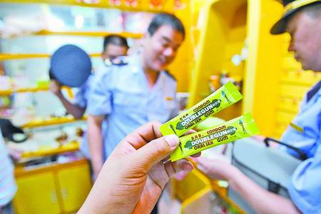 但面對詢問,該店店長稱老板在外地,相關手續可能還未辦理。最后,執法人員將該店的安全套用品全部暫扣。(記者李 巖 實習生 齊葉帆文 記者許俊文 圖)