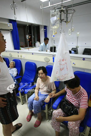劉小姐在醫(yī)院打點滴。