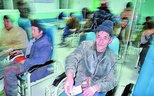 昨晚7時許,祭城醫院的內科病房內,突然擁進二十幾個民工!懊總人的臉色都很差,有的還不停地嘔吐!痹撛阂蛔o士說。