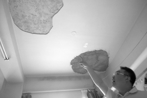 就在記者了解情況過(guò)程中,侯女士不斷出現(xiàn)惡心、嘔吐等癥狀。“這房子也太不結(jié)實(shí)了,去年10月份臥室靠近窗戶的天棚就掉了一塊墻皮,好在家里沒(méi)人,后來(lái)我們自己用水泥抹了一下。”當(dāng)天,倪先生找到了負(fù)責(zé)小區(qū)開(kāi)發(fā)的哈爾濱新陽(yáng)開(kāi)發(fā)公司,但等了3個(gè)多小時(shí)也沒(méi)見(jiàn)到相關(guān)負(fù)責(zé)人。
