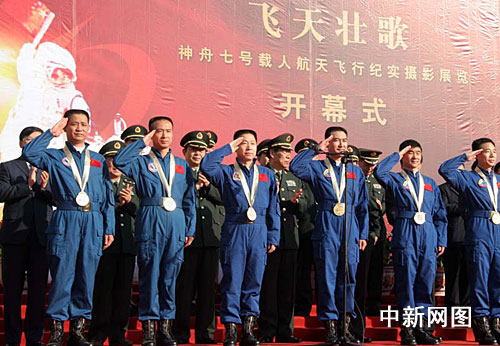 11月9日,以“再現(xiàn)‘神七’飛天全過程 記錄漫步太空經(jīng)典時刻”為主題的《飛天壯歌——神舟七號載人航天飛行紀實攝影展覽》,九日在北京中國人民革命軍事博物館開幕。