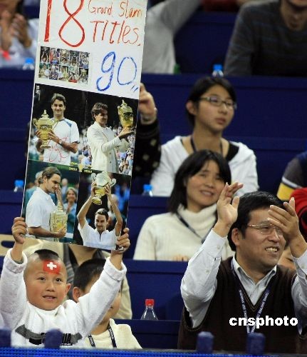 圖為上海“小費迷”為費德勒吶喊助威。中新社發(fā) 湯彥俊 攝