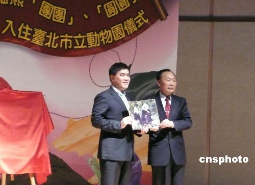 臺北市政府十二月二十四日上午舉行儀式,歡迎“團團”“圓圓”入住臺北市立動物園。大陸贈臺大熊貓“團團”“圓圓”十二月二十三日晚間抵達臺北市立動物園。中新社發 路梅 攝