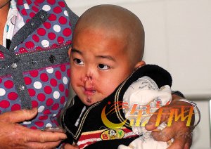 “小孩子現在大了,常聽別人議論,也已經明白自己的傷是怎么來的,”小祖爸爸說,孩子雖然面部有缺損,但十分懂事,每次做手術都不哭不鬧,相當配合。(張小磊 郭梅美 劉文勇 李巖)