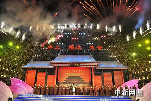 晚會(huì)由湖南衛(wèi)視著名主持人楊樂樂主持。海內(nèi)外高僧大德云集于此。香港著名歌手梁詠琪為活動(dòng)獻(xiàn)唱了兩首耳熟能詳?shù)母枨抖Y物》和《愛得起》。臺(tái)灣佛樂天后齊豫演唱了佛曲《船歌》。內(nèi)地新生代歌手薩頂頂、《西游記》唐僧扮演者徐少華、香港Byond樂隊(duì)成員葉世榮登臺(tái)獻(xiàn)藝。