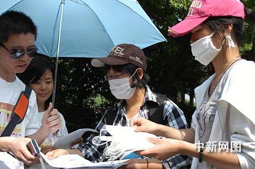 中新網杭州5月4日電(記者 江耘 通訊員 陳國利) “您好,這是我們印制的宣傳冊,介紹了日常生活中預防甲型H1N1的方法,我們還給您準備了口罩。如果您覺得需要,就麻煩您戴上它!苯裉煜挛2點多,游客羅先生與夫人正在西湖邊散步,迎面碰上兩位帶著口罩的大學生。
