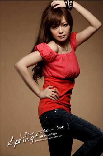 熱艷火熱的紅色,加上領口褶皺感的設計。不風韻的女生還怕沒有自信可言嗎?褶皺感設計的領口設計實在是讓忍不住誘惑!覺得臀部的有點肉肉的MM可以選用較長的T恤遮住臀部!可是又顯得曲線十足!