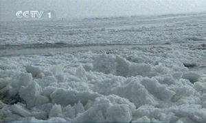 中新網1月13日電 黃河三門峽庫區近日出現歷年罕見的封凍,從三門峽水庫大壩至潼關90多公里的庫區河道幾乎全部封凍。