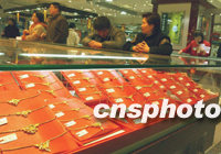 受國(guó)際黃金價(jià)格連創(chuàng)新高影響,近日,鄭州各商場(chǎng)的黃金首飾價(jià)格又攀新高,不少柜臺(tái)都標(biāo)到了每克128元,創(chuàng)出幾年未見(jiàn)的高價(jià)格。馬健 攝