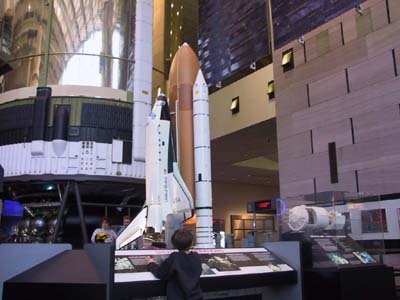 美國(guó)游客在航天飛機(jī)模型前駐足觀(guān)望