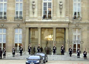 法總統府儀仗隊列隊歡迎華僑華人。馮越強攝