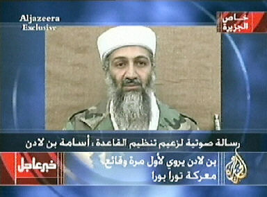 據報道,在11日晚間正常播放節目期間,半島電視臺的電視屏幕下方打著這樣一個標題:“‘基地’組織領導人奧薩馬·本·拉登號召所有穆斯林團結起來,共同保衛伊拉克人民,半島電視臺將于稍晚時候播放一段錄音。”