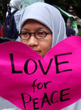 周六上午,來(lái)自泰國(guó)各地的穆斯林、佛教僧侶和普通民眾,以及泰國(guó)上議院議員和高等院校的學(xué)者,在美國(guó)駐泰大使館附近的侖披尼公園集會(huì),他們高舉反戰(zhàn)標(biāo)語(yǔ),舉行反戰(zhàn)演講,穆斯林阿訇帶領(lǐng)信眾誦經(jīng)祈禱和平。一些在泰國(guó)的外國(guó)人也加入了反戰(zhàn)示威行列。