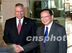 唐家璇與鮑威爾會談 中國領導人隨后會見鮑威爾