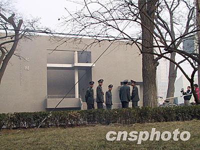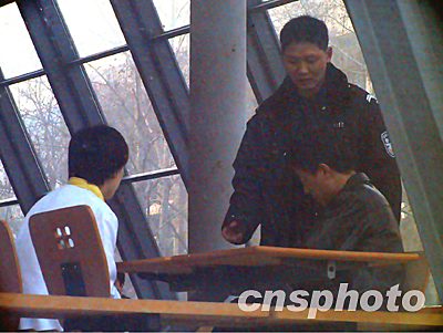 北京大學農園餐廳二月二十五日發生自制黑火藥爆炸事故。圖為警察在餐廳前執勤。作者:武仲林