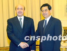 國家副主席胡錦濤二十七日在北京會見俄羅斯外長伊萬諾夫。作者:滿會喬