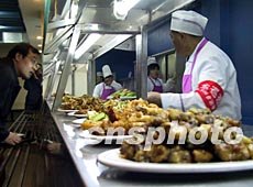 餐廳的服務人員說,今天的飯菜有300多種,和平時一樣多。