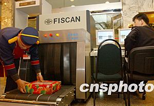 三月一日,在全國政協委員入住的北京友誼賓館,工作人員正在對進入賓館的物品進行安全檢查。作者:張煒