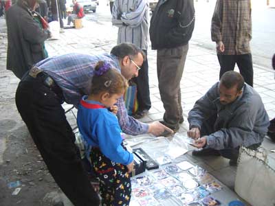巴格達市民在買盜版美國大片VCD,大概4元人民幣一張。(春風(fēng))
