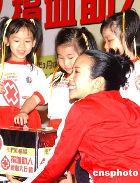 中新網3月19日電 香港藝人莫文蔚(Karen)昨日以“捐血愛心之星”身份出席捐血助人獻愛心活動,現場安排了一班小朋友載歌載舞,看得Karen大拍手掌。