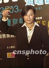 歌星王杰3月28日在香港出席“Neway一夜情歌王杰演唱會”記者會。是次演唱會將以“一夜情歌”作主題會歌迷,以獨特風格,為歌迷帶來驚喜,圖為王杰為預祝個唱成功舉杯。鄧慶樂 攝