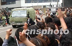 大殮儀式結(jié)束后,以全白花朵裝飾的靈車載著張國(guó)榮的靈柩駛離殯儀館,往哥連臣角火葬場(chǎng)火化。聚集在殯儀館門(mén)外的歌影迷揮手與偶像道別,讓他的倩影、歌聲永留心里。