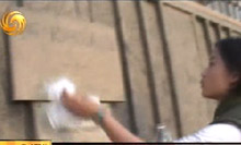中國駐伊拉克大使館遭到暴徒兩度搶掠一空,香港鳳凰衛(wèi)視女記者隗靜星期二(15日)到大使館內(nèi),看到劫后的使館滿目瘡痍。隗靜已將兩面遭掠后留在地面上的中國國旗收好,準備轉(zhuǎn)交給中國外交部,她更用僅有的半瓶礦泉水,將大使館門前的黃銅門牌擦拭干凈。